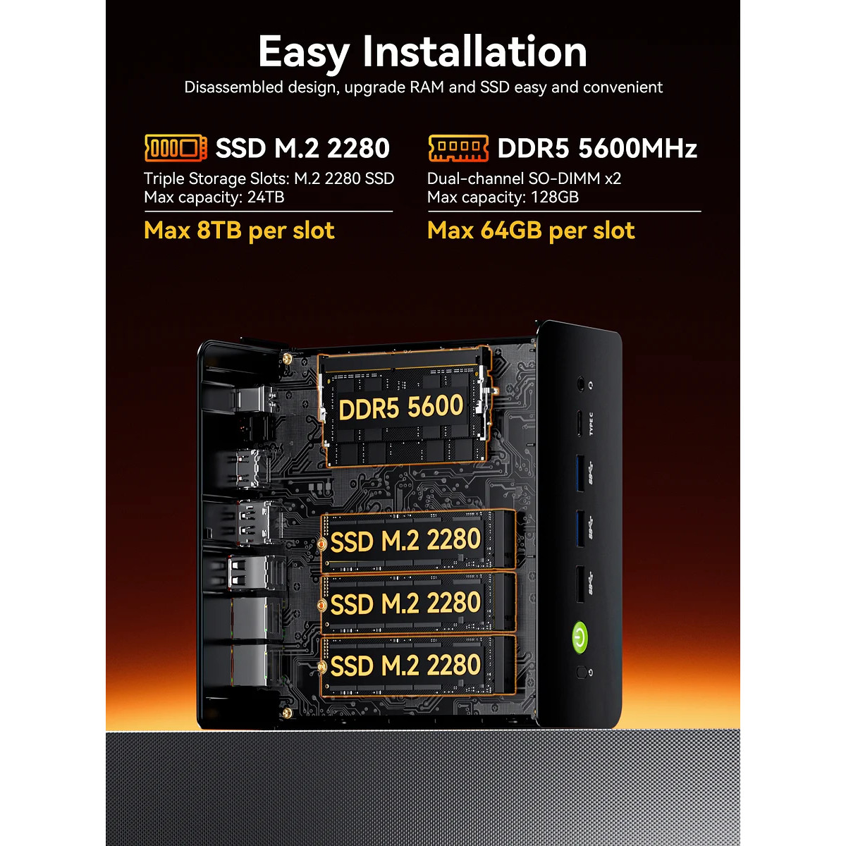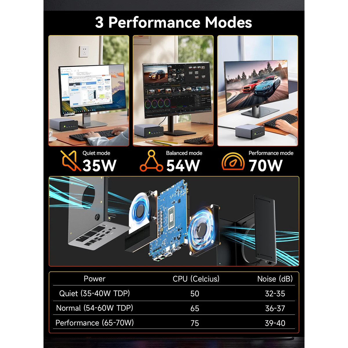 NucBox K12 MiniPC System - Windows11 Pro, AMD Ryzen 7 H255, Radeon Graphics 780Mm Graphics Core Count: 12, Graphics Frequency 2600 MHz, 32GB DDR5 5600Mhz, 1TB M.2 2280 NVMe, Bluetooth 5.2, WiFi 6, 4 displays 1xHDMI 2.1 (8K@60Hz) / 2x Type-C USB4.0 full feature/ 1x DisplayPort 2.1 (8K@60Hz), 2x 2.5G LAN, Grey, 132x125x58mm - OCulink Port, 3 Years Pickup Warranty by Distributor