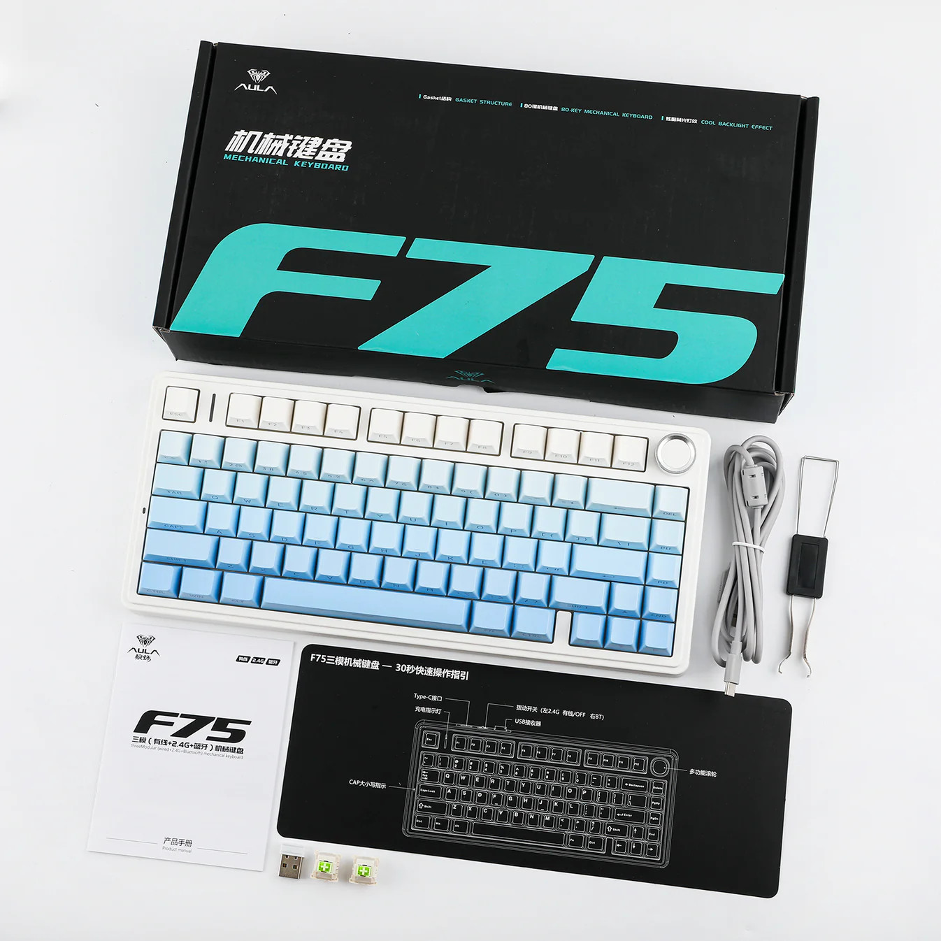 AULA f75 Blue (Side Printed) - 75% Gasket Wireless Mechanical Keyboard - Wired - TKL - LEOBOG Reaper Switch - English Only (No Hebrew on Keyboard)