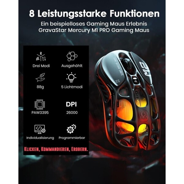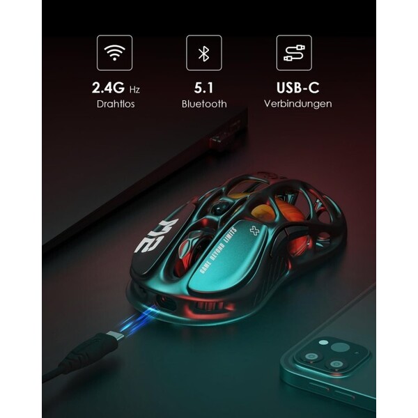 Mercury M2 Gaming Mouse - Wireless - USB/Bluetooth - Stealth Black