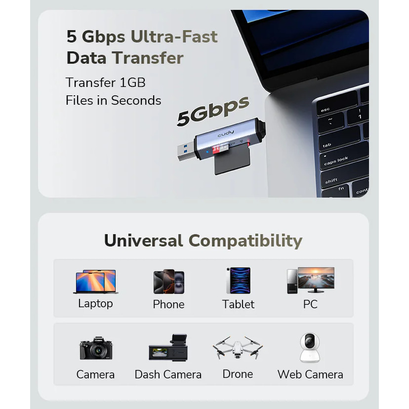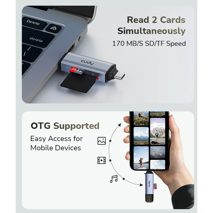 2-IN-1 USB 3.0 SD/MicroSD/TF Card Reader, Works with PC/Mac/iPad/iPhone/Android