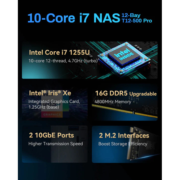 12-Bay - 0TB (Diskless) - Intel Core i7-1255U - 16GB DDR5 (upgradable) - 2x 10GbE Ports